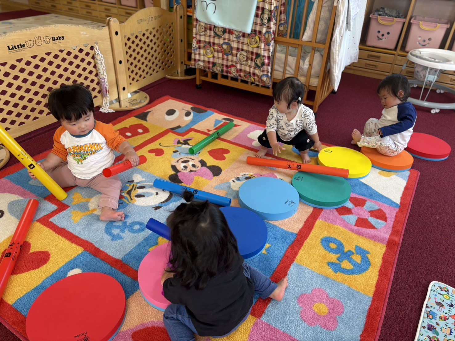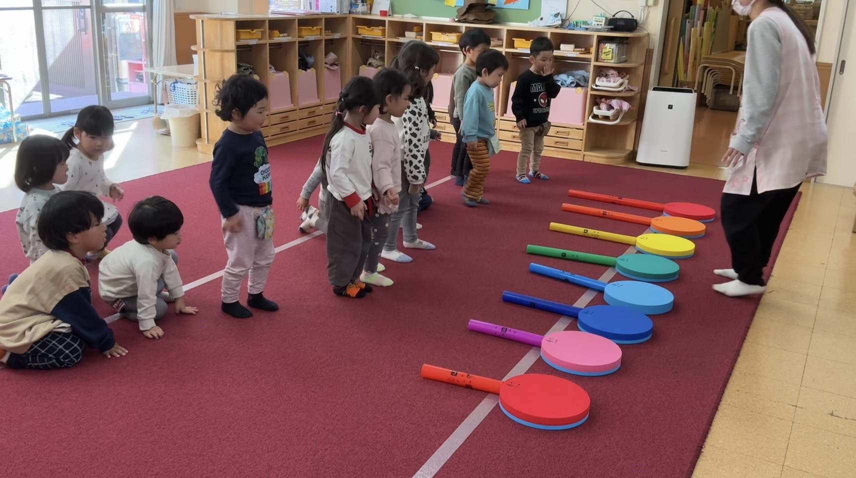 音階があるから歌になることや、高いド・低いドノ違いも体験し、名前を付けてもらうと「笛の音」「カエルの音」等子どもらしい発想がたくさん出てきました。