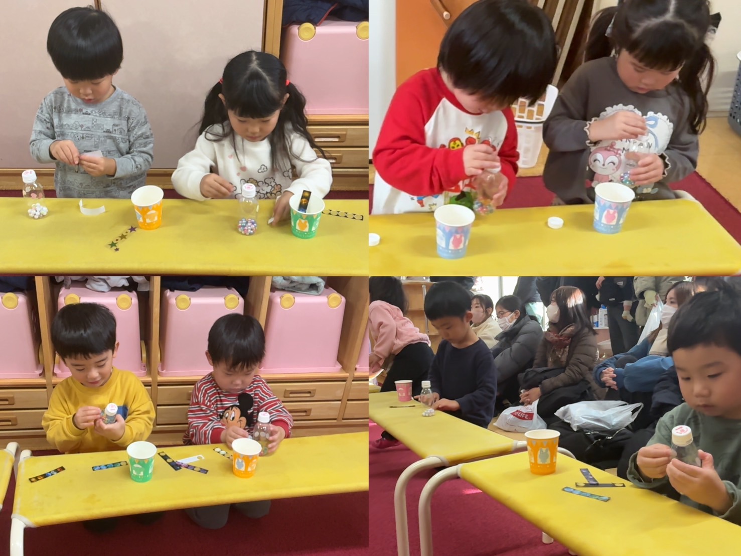 出来上がると、「みてみて~!!」と嬉しそうに保護者の方や、お友達に見せる姿がとてもかわいかったです♡