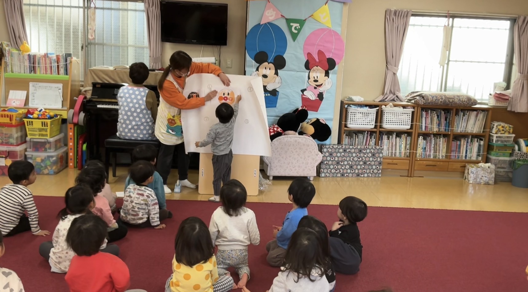 アンパンマンのノ手遊びでは「これはうれしい音かな?」「これは起こっている音かも??」とクイズ形式で聞いていきました。
